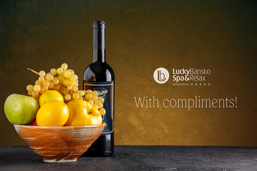 - ВИП зареждане в избрания тип стая – 1 бут. вино, фруктиера с плодове, зареждане с козметика на Molton Brown, избор на възглавница от Меню възглавници